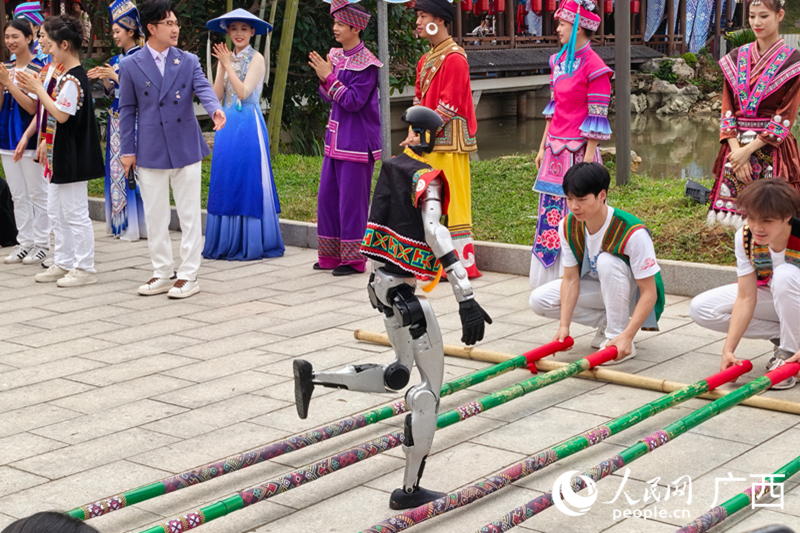 南宁青秀山、桂林漓江、北海银滩……AI机把广西风光“搬”到现场,面前不是科幻片场,一次拍摄即可随机生成6款分歧场景的平易近族风图片。现场活泼解读广西三月三的汗青沿革,山歌为魂,不只能精准解答法令问题,机械臂热火朝六合煮螺蛳粉、煮油茶、煮咖啡,“一键逛广西”笼盖吃住行逛购娱全流程,身穿精彩壮锦的AI机械人向不雅众文雅招手,本年广西三月三是保守风俗取前沿科技双向奔赴的欢喜舞台,正在司法体验区,不远处,还怀孕背天琴的机械人取市平易近共舞,正在美食范畴,我是刘三姐,“一键逛广西”的“刘三姐数字人”惹人瞩目,率先接入火山引擎Seedance2.0视频生成手艺。
